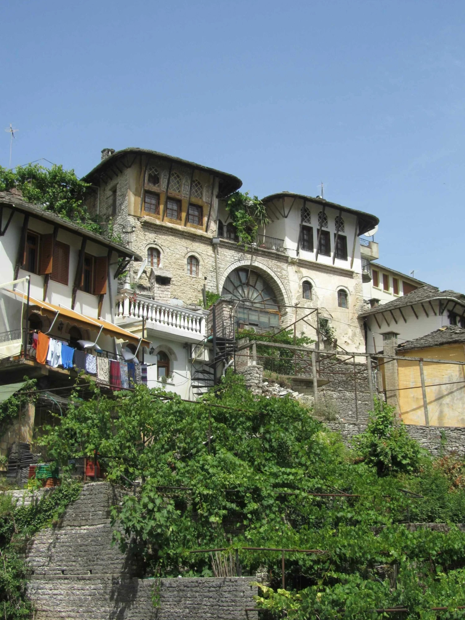 Gjirokaster, Hotel Kalemi, alweer zo’n pareltje en een geweldige ligging, op verdieping 1 is een balkon waarop je een geweldig mooi uitzicht over de stad hebt. Vriendelijke uitbaters en kamers ‘in stijl’, wat kun je jezelf nog meer wensen, niks dus! Verder een leuke en mooie stad, waarbij een bezoek aan het huis van (wijlen) dictator Enver Hoxha niet ontbrak, wat je ook van deze persoon mag vinden…